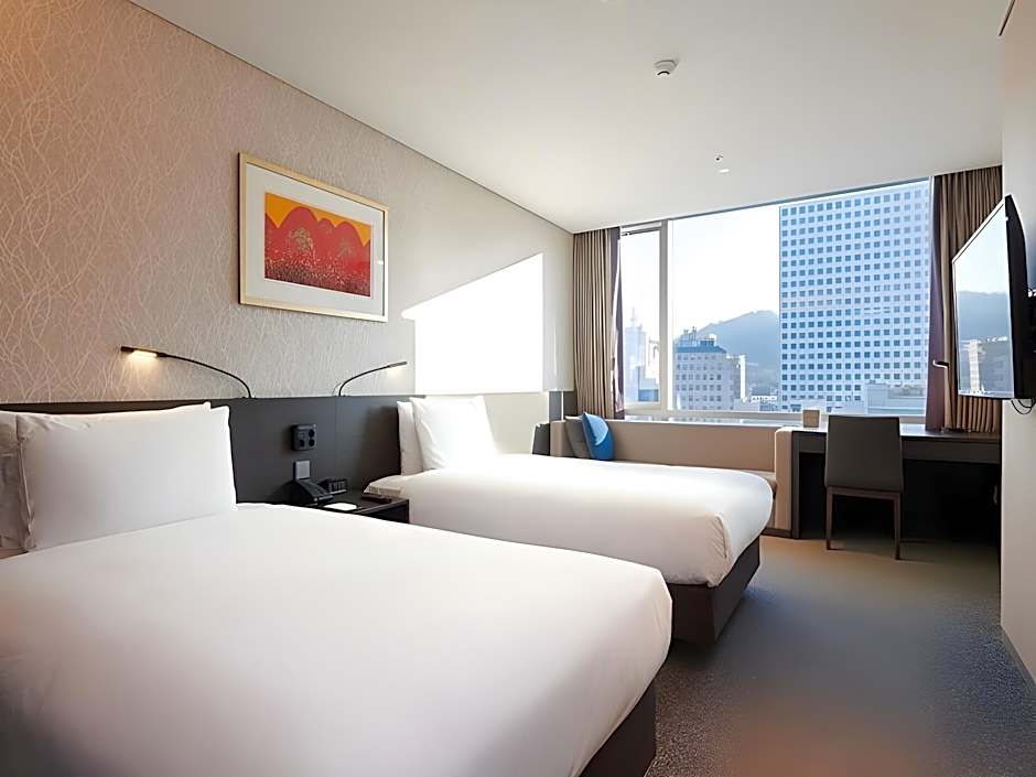 Offering bathrobes, this twin room includes a private bathroom with a shower, a bidet and a hairdryer. The air-conditioned twin room offers a flat-screen TV with cable channels, a private entrance, soundproof walls, a tea and coffee maker as well as city views. The unit has 2 beds.